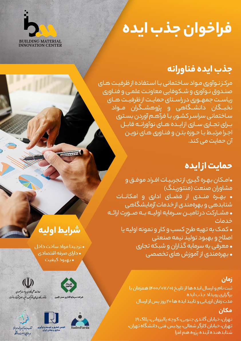 - گام اول نقشهراه مرکز نوآوری مواد ساختمانی: فراخوان شناسایی طرح و ایدهها